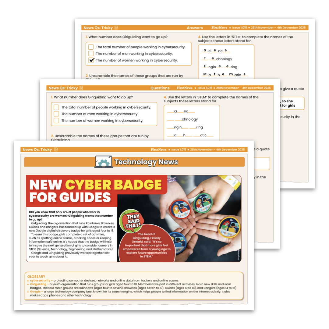 • Fresh news-based, differentiated activities and answers, every week of term.