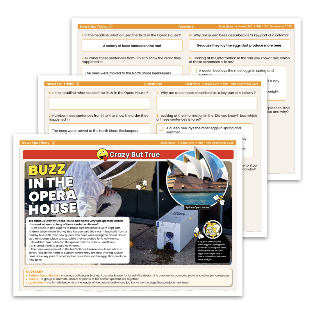 • Fresh news-based, differentiated activities and answers, every week of term.