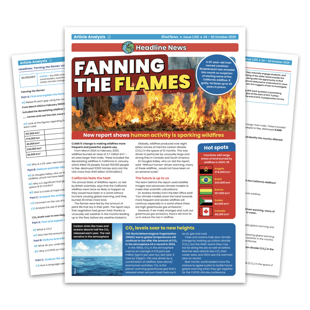 • Fresh news-based, differentiated activities and answers, every week of term.