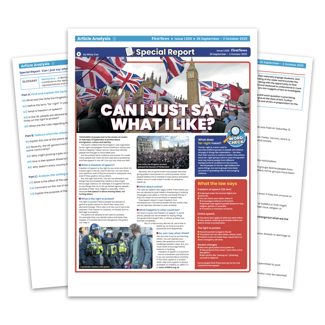 • Literacy-boosting reading comprehensions, topical debates and vocabulary puzzles.
