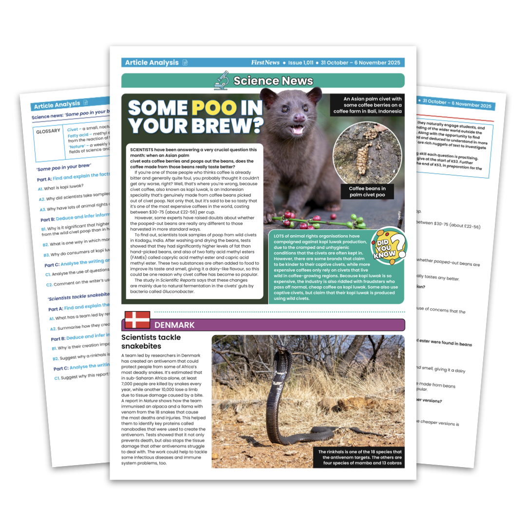 • Fresh news-based, differentiated activities and answers, every week of term.