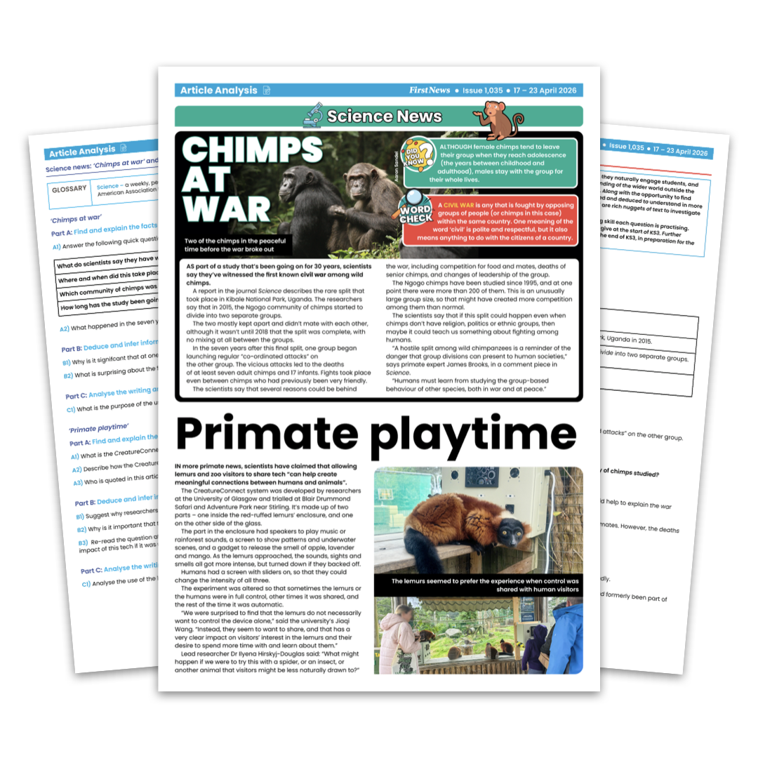 (Chimps at war, Primate playtime) (17 - 23 April 2026)